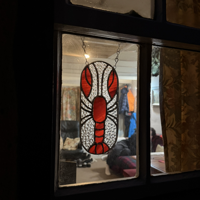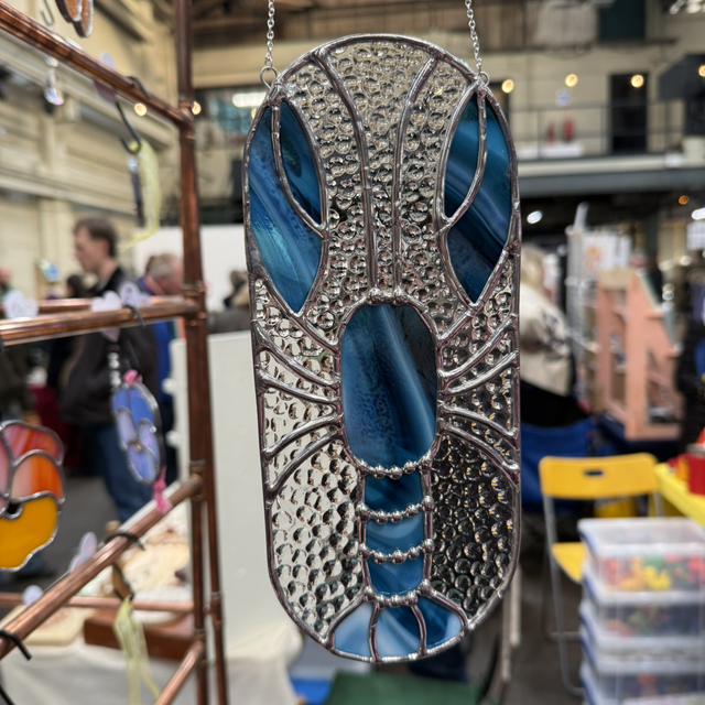 Swirly glass in either blues and white or reds and orange make this lobster pop!